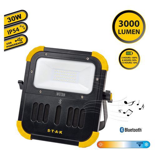 | Produktname | LED-Scheinwerfer Wotan mit Bluetooth-Lautsprecher - Stak, Lichtstrom: 3000 lm, Energie: 30 W |