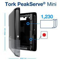 Der Mini-Papiertuchspender Tork PeakServe® Mini distributeur d'Essuie-mains continus™ gibt Papiertücher binnen 3 Sekunden aus und kann 1230 Tork Papiertücher aufnehmen