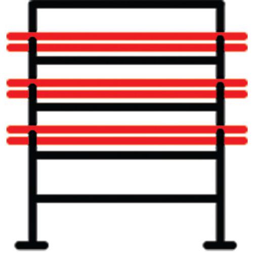 3 Ebenen mit Überhangstruktur und jeweils einstellbarer Höhe.