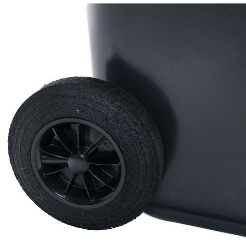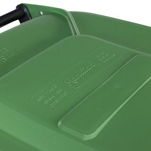 KostengĂŒnstiger AbfallbehĂ€lter aus Kunststoff mit Rollen und einem Fassungsvermögen von 240L sowie verschiedenfarbigen Deckeln fĂŒr eine einfache Abfallentsorgung UV-bestĂ€ndiger BehĂ€lter. FĂŒr einen einfachen Transport ist der BehĂ€lter mit zwei soliden RĂ€dern ausgestattet. Einfache Pflege des BehĂ€lters dank der glatten Kunststoff-OberflĂ€che. Deckel in verschiedenen Farben zur Erleichterung der MĂŒlltrennung. Per uso esterno