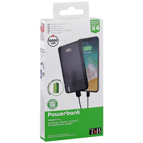 | Produktname | Mobiler Ersatzakku, 2 USB, 10.000 mAh ‑ T'nB, Ladestrom: 10000 mAh, Farbe: Schwarz, Breite: 6.8 cm |