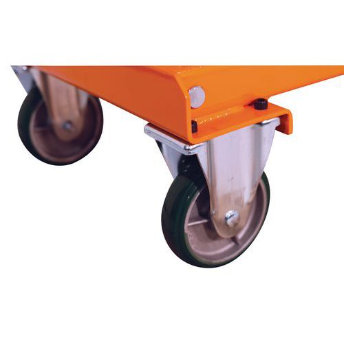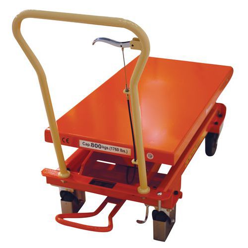 - Handlicher Hubtisch mit Rollen mit geringem Anlaufwiderstand.