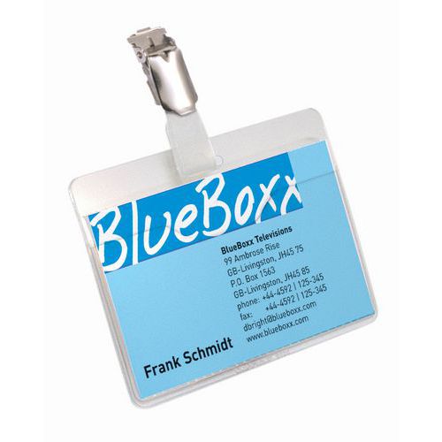 | Produktname | Namensschild ‑ Teilweise Abdeckung mit Clip ‑ Durable, Farbe: Transparent, Länge: 90 mm, Höhe: 60 mm |