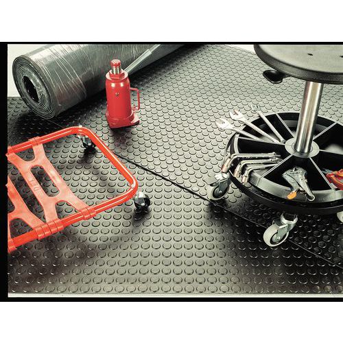 Strapazierfähige und besonders verschleißarme SBR-Gummimatte Rutschfest durch Noppen Beständig gegenüber verdünnten Säuren und Basen Einfaches Verlegen und Pflegen Kann überall als Schutz vor herunterfallenden Gegenständen eingesetzt werden