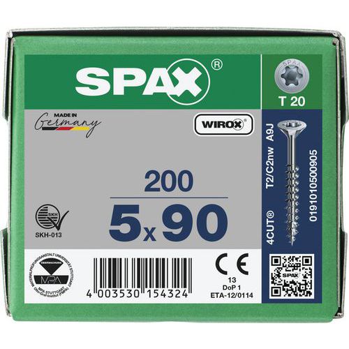 Packung mit 200 Senkkopf-Universalschrauben mit T-Star-Plus-Antrieb TX Ø – Spax