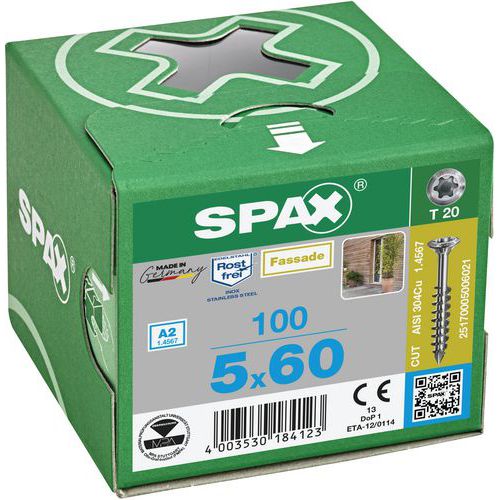 Packung mit Linsenkopf-Fassadenschrauben TX Ø 4,5 bis 5 mm – Spax
