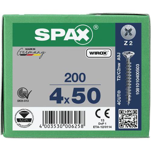 Packung mit Senkkopf-Universalschrauben PZ Ø 3 bis 5 mm – Spax, Werkstoff: Stahl, Gewinde Ø: 4 mm Packung mit Senkkopf-Universalschrauben PZ Ø 3 bis 5 mm – Spax, Werkstoff: Stahl, Gewinde Ø: 4 mm