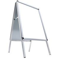 Plakatständer mit abgerundeten Ecken, Profilbreite 32 mm - gute Sichtbarkeit und ansprechendes Design Stabil dank Kunststoffeinsätzen in den Aluminiumfüßen Stoßfester Plakatständer mit Rückseite aus rostfreiem Metall Posterschutz durch UV-beständige, entspiegelte Folien Da der Flipchart klappbar ist, lässt er sich leicht bewegen