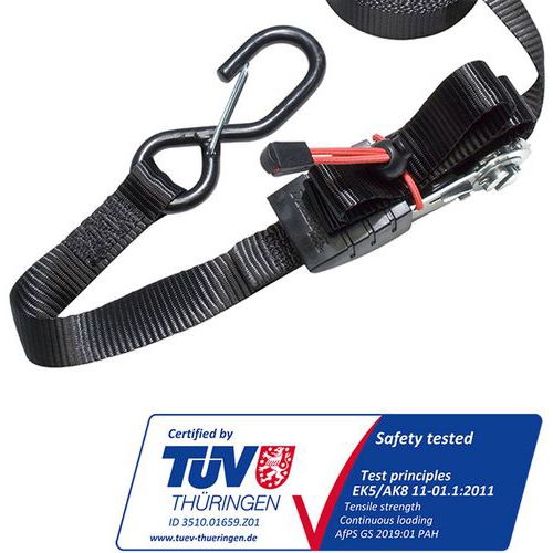 | Produktname | Ratschengurt, Länge: 4250 mm, Höchstbelastung: 400 kg, Breite: 25 mm, Farbe: Schwarz |