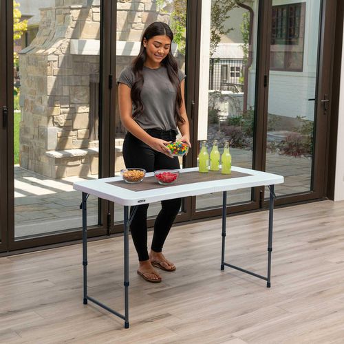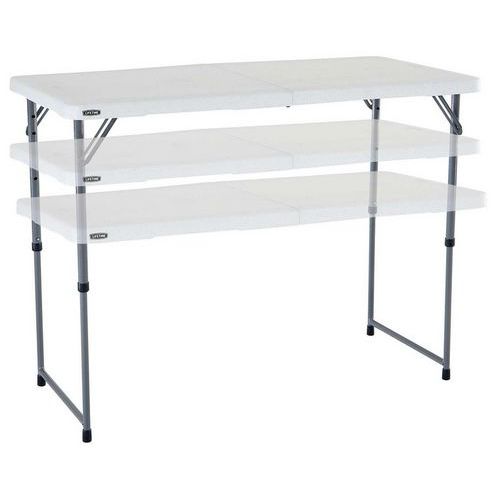 | Produktname | Rechteckiger Tisch, 2-fach klappbar, Typ Unterseite: 4 Füßen, Höhe: 74 cm, Breite: 61 mm, Form: Rechteck |