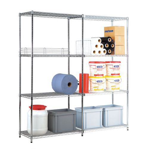 Inhalt: - 4 oder 2 Ständerrahmen (Grundelement 4, Anbauelement 2) - 4 Gitterfachböden