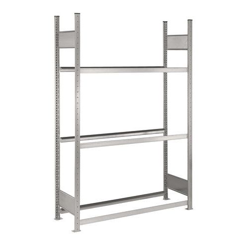Inhalt: 4 oder 2 Ständerrahmen (Grundelement 4, Folgeelement 2), je nach Regalhöhe 6, 8 oder 10 Streben, komplettes Schraubenset (ohne Bodenbefestigung), 1 Montageanleitung.