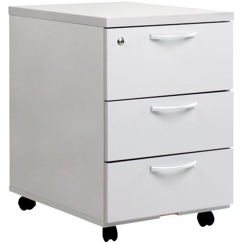 - Rollcontainer mit Metall-Griffen aus Aluminium mit melaminbeschichteter Konstruktion.