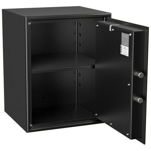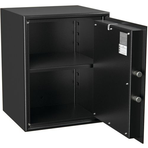 Safe HT mit 15 bis 135 Litern. Einbruchschutz nach Norm Klasse S1. Anti-Bohr-Panzerung aus Mangan der Verriegelungsanlage. Höhenverstellbarer Fachboden ab 30 Liter. Befestigungslöcher (2 auf der Rückseite, 2 am Sockel). Consegna al piano terra ai piedi del palazzo. Einbruchsicherung : Klasse 1