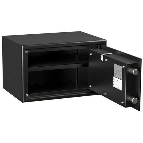 Safe HT mit 15 bis 135 Litern. Einbruchschutz nach Norm Klasse S1. Anti-Bohr-Panzerung aus Mangan der Verriegelungsanlage. Höhenverstellbarer Fachboden ab 30 Liter. Befestigungslöcher (2 auf der Rückseite, 2 am Sockel). Consegna al piano terra ai piedi del palazzo. Einbruchsicherung : Klasse 1
