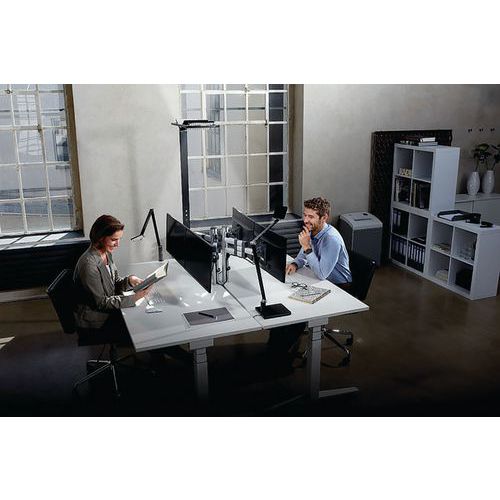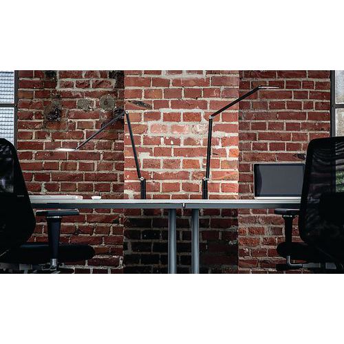 LED-Büroleuchte in sehr raffiniertem Design, eleganter, zweiteiliger Aluminium-Gelenkarm und unsichtbare Kabelführung. Klemmfuß. Lichtleistung 4000K