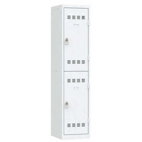 Spind mit mehreren Fächern, 1 bis 3 Säulen und jeweils übereinander angeordneten Fächern Einteilig und werkseitig verschweißt für mehr Stabilität und Robustheit. Günstig und funktionell dank breiter Fächer. Zur Ablage von Geräten und Gegenständen unterschiedlichster Art. Geeignet für Schulen, Sportzentren, Krankenhäuser, Unternehmen sowie den Dienstleistungs- und Industriesektor usw.
