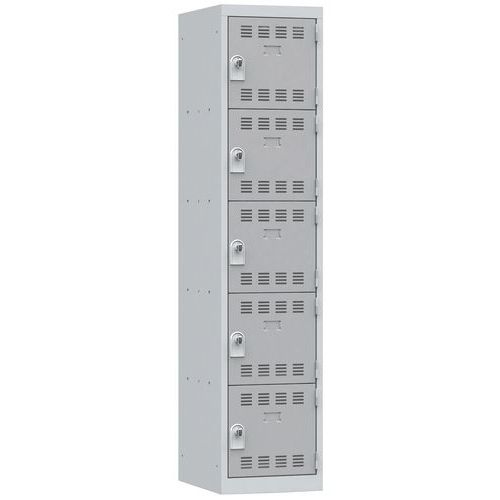 Spind mit mehreren Fächern, 1 bis 3 Säulen und jeweils übereinander angeordneten Fächern Einteilig und werkseitig verschweißt für mehr Stabilität und Robustheit. Günstig und funktionell dank breiter Fächer. Zur Ablage von Geräten und Gegenständen unterschiedlichster Art. Geeignet für Schulen, Sportzentren, Krankenhäuser, Unternehmen sowie den Dienstleistungs- und Industriesektor usw.