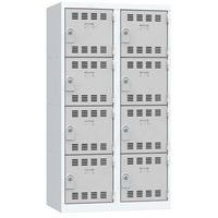 Spind mit mehreren Fächern, 1 bis 3 Säulen und jeweils übereinander angeordneten Fächern Einteilig und werkseitig verschweißt für mehr Stabilität und Robustheit. Günstig und funktionell dank breiter Fächer. Zur Ablage von Geräten und Gegenständen unterschiedlichster Art. Geeignet für Schulen, Sportzentren, Krankenhäuser, Unternehmen sowie den Dienstleistungs- und Industriesektor usw.