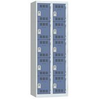 Spind mit mehreren Fächern, 1 bis 4 Säulen und jeweils übereinander angeordneten Fächern Einteilig und werkseitig verschweißt für mehr Stabilität und Robustheit. Günstig und funktionell dank breiter Fächer. Zur Ablage von Geräten und Gegenständen unterschiedlichster Art. Geeignet für Schulen, Sportzentren, Krankenhäuser, Unternehmen sowie den Dienstleistungs- und Industriesektor usw.