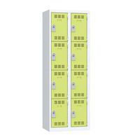 Spind mit mehreren Fächern, 1 bis 4 Säulen und jeweils übereinander angeordneten Fächern Einteilig und werkseitig verschweißt für mehr Stabilität und Robustheit. Günstig und funktionell dank breiter Fächer. Zur Ablage von Geräten und Gegenständen unterschiedlichster Art. Geeignet für Schulen, Sportzentren, Krankenhäuser, Unternehmen sowie den Dienstleistungs- und Industriesektor usw.