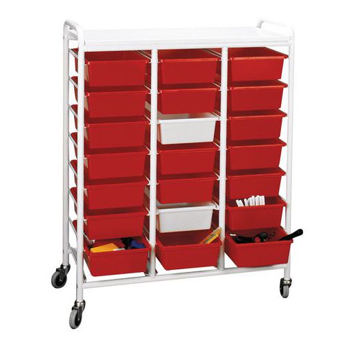 - Stahlwagen für Behälter mit der Möglichkeit zur Aufnahme von Fachböden.