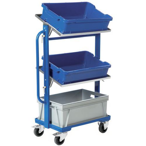 | Produktname | Stahlwagen für Euronormbehälter - Länge: 800 mm, Max. Belastung: 150 kg, Gesamthöhe: 1100 mm |