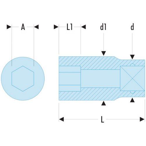 | Produktname | Steckschlüsseleinsätze 1/2, 6-Kant, metrisch, Anzahl Seiten: 6, Typ Nr.: S.34H, Nutzbare Tiefe: 2.0 cm |