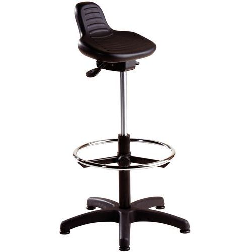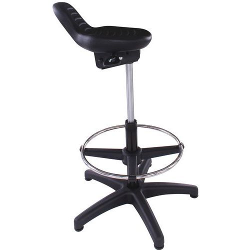 | Produktname | Stehsitz, Typ Fuss: Bodengleiter, Sitz Material: Polyurethan, Stuhl Modell: Hoch, Fußstütze: ja |