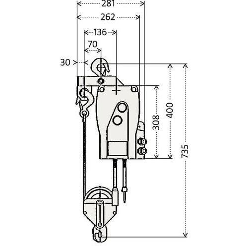 Der Seilantrieb durch eine Laufrolle und die Selbsteinspannung proportional zur Last (das gleiche System wie bei den Winden von Tirfor) ermöglichen eine unbegrenzte Hubhöhe.