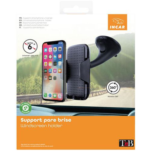 | Produktname | Universal-Smartphone-Halter für Windschutzscheibe - T'nB, Werkstoff: ABS, Farbe: Schwarz |
