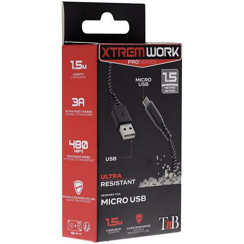 | Produktname | USB/Micro-USB-Kabel XTREMWORK - T'nB, Farbe: Schwarz/grau, Recycelbare Verpackung: Ja - 100%, Länge: 1.50 m |