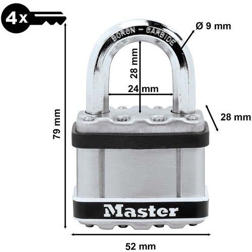 Vorhängeschloss mit Schlüsseln aus gewalztem Stahl mit Edelstahlschutz - Master Lock