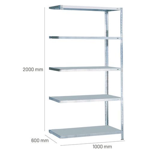Einfache Erweiterung durch das Hinzufügen von einem oder mehreren Folgeelementen Epoxid-Beschichtung, stoßfest, grau oder verzinkt Einfach und schnell zu montierendes Regal