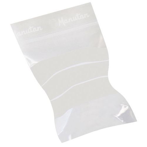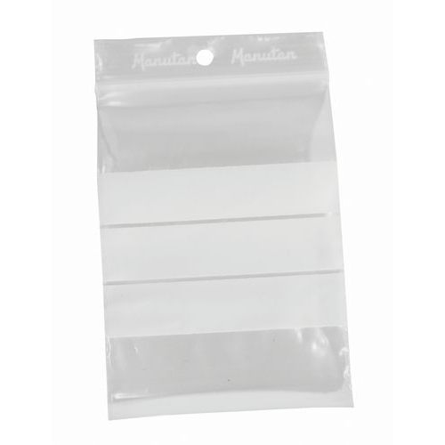 Zip-Beutel - weißes Band 50 µm - Manutan Expert, Stärke: 50 µm, Werkstoff: Polyethylen, Höhe: 120 mm Zip-Beutel - weißes Band 50 µm - Manutan Expert, Stärke: 50 µm, Werkstoff: Polyethylen, Höhe: 120 mm