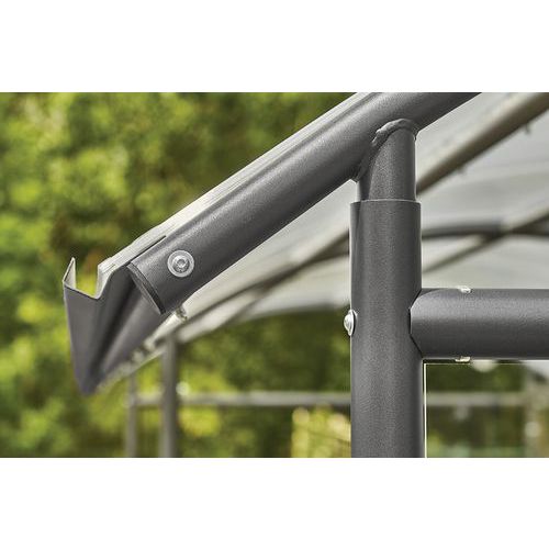 Abri avec pieds réglables en hauteur pour mise à niveau.