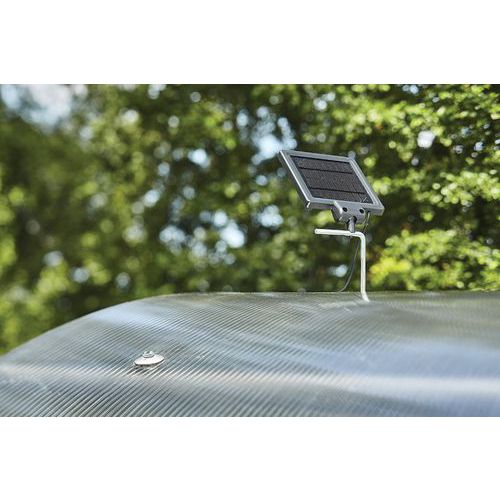 Livré avec un panneau solaire et spot (détecteur de présence nuit uniquement).