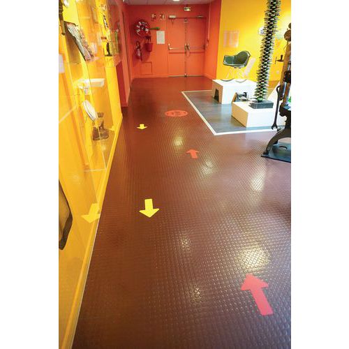 - Adhésif de marquage au sol flèche, 3 fois plus épais (400 μm) et plus résistant que les autres produits similaires du marché.