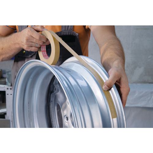 Adhésif de masquage papier finement crêpé, extrêmement étirable et souple pour des travaux de peinture.