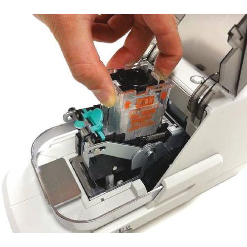 - Agrafes parfaitement aplaties quelque soit l’épaisseur de la liasse, pour une réduction du volume de classement.