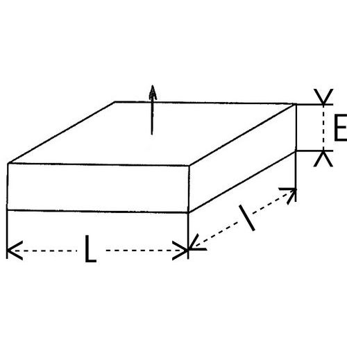 Aimant rectangulaire, Longueurs: 20 mm, Largeur: 10 mm, Épaisseur: 5 mm, Densité: 7.5 g/cm³