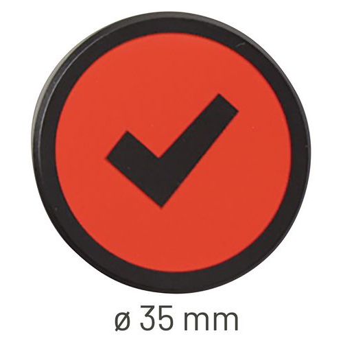 Aimant rond avec symbole vérifié, Type: Vérifié, Coloris: Rouge, Ø: 35 mm, Emballage recyclable: Oui - 100 % Aimant rond avec symbole vérifié, Type: Vérifié, Coloris: Rouge, Ø: 35 mm, Emballage recyclable: Oui - 100 %