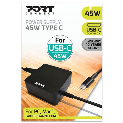 - Alimentation avec connecteur de Type C permettant de recharger votre smartphone, votre tablette ou votre ordinateur.