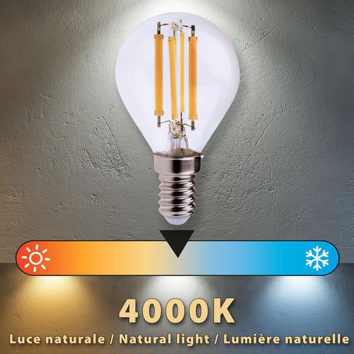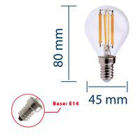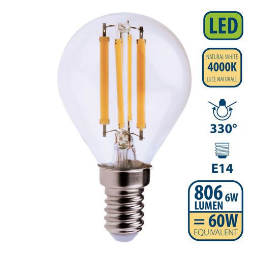 Ampoule à filament LED mini-Sphérique P45 6W, Flux lumineux: 806 lm, Type de culot: E14