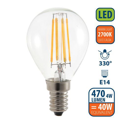 Ampoule à filament LED P45 4W culot E14, Flux lumineux: 470 lm, Type de culot: E14