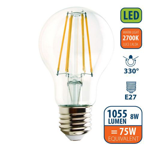 Ampoule à filament LED standard A60 8W culot E27 - VELAMP