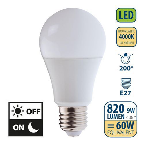 Ampoule LED A60 E27 économe avec capteur crépusculaire - Velamp
