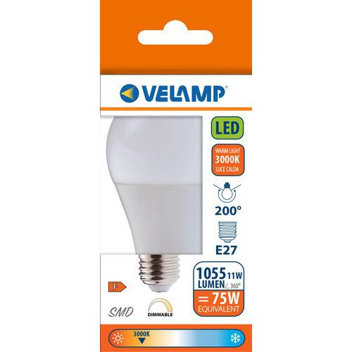 | Intitulé du produit | Ampoule LED SMD dimmable, standard A60, Flux lumineux: 1055 lm, Type de culot: E27 |
