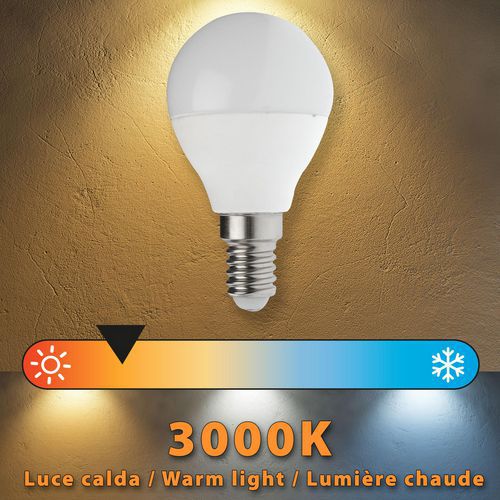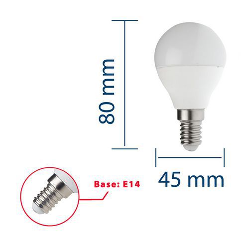 Ampoule Led Smd mini-Sphérique P45 6W culot E14, Flux lumineux: 470 lm, Type de culot: E14