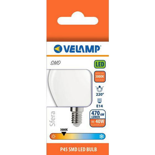 Ampoule Led Smd mini-Sphérique P45 6W culot E14 - VELAMP
